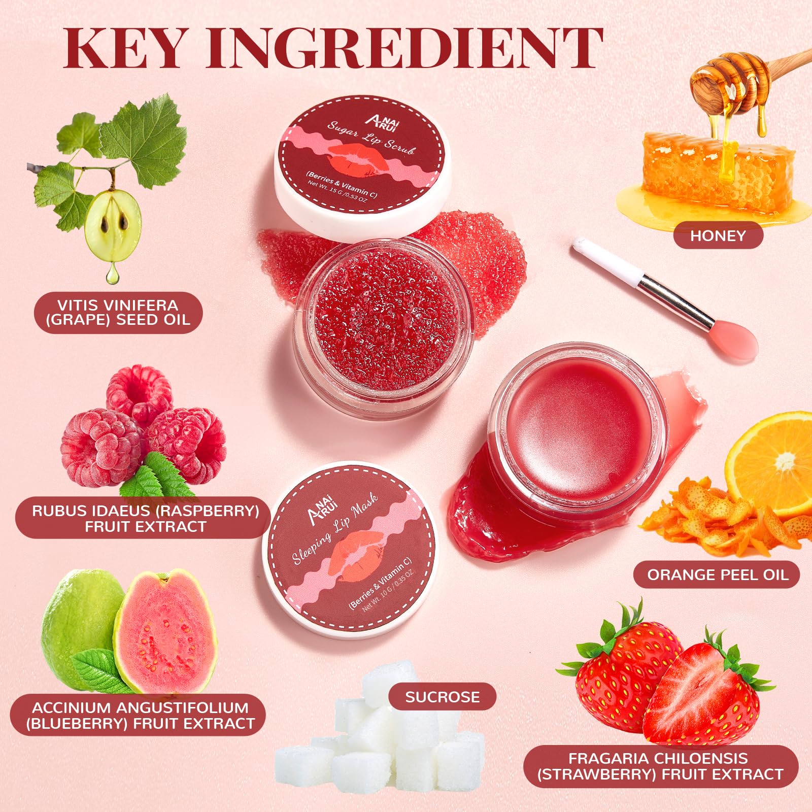 Lip Scrub & Lip Mask Set, Lip Sleeping Mask, Overnight Treatment Lip Care Products, Holiday Gift Set for Girls, Moisturize & Nourish, Dry Cracked Lips, Intense Hydration with Vitamin C