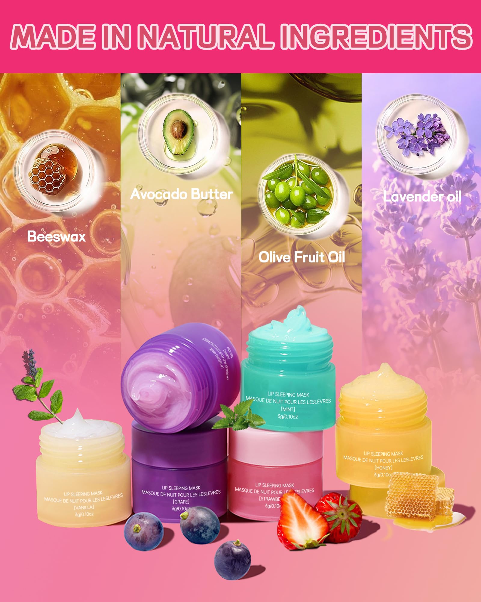 Lip Sleeping Mask Set-5 Pcs Lip Balm Hydrating Lip Mask Overnight Lip Treatment Care for Dry Cracked Lips,Day &Night Moisturize &Nourish Korean Lip Gloss Women to Improve Lip Color With Shea Butter