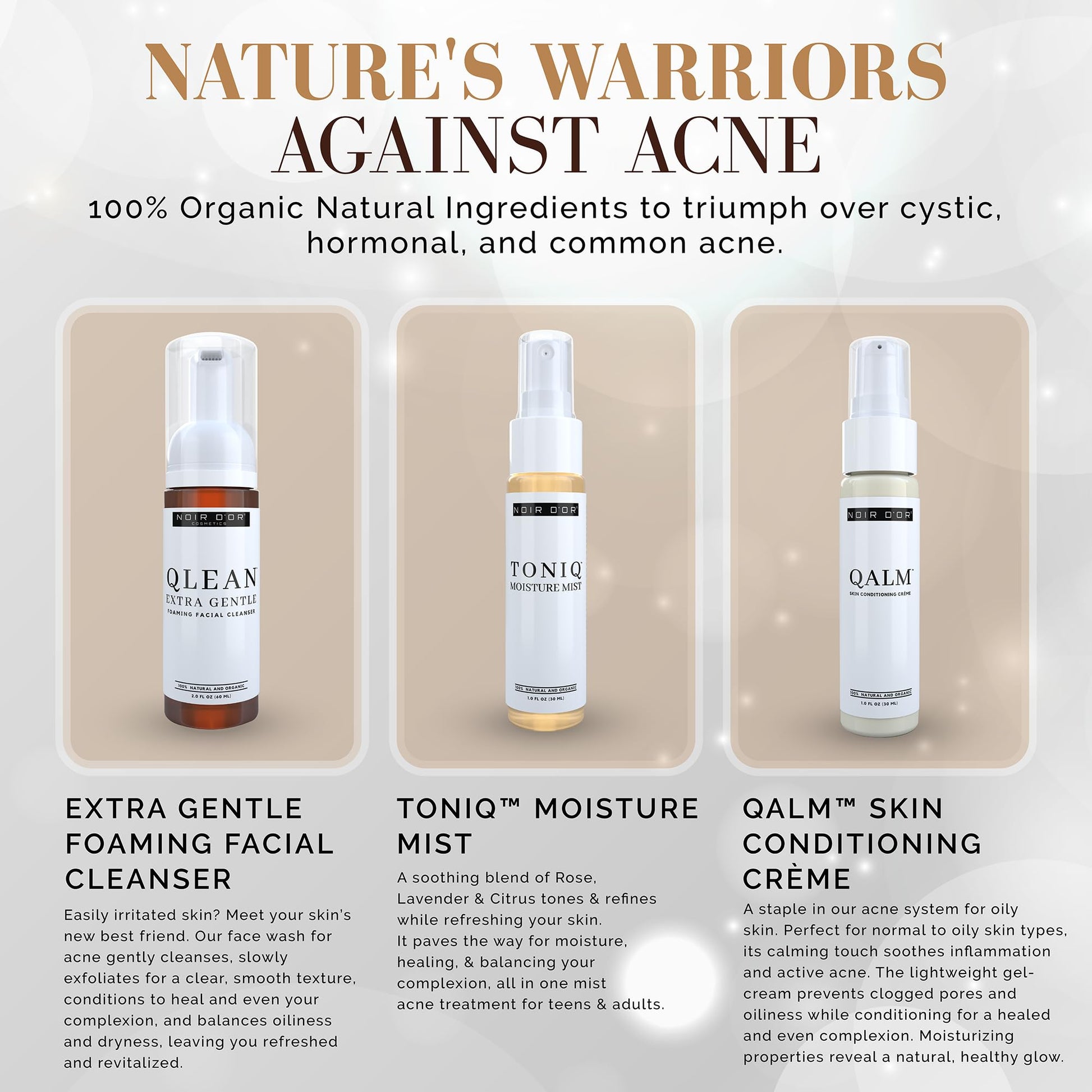 ALL-NATURAL ACNE SOLUTION: Noir D'or's 3-Step acne scar treatment for face kit harnesses natural potency to prevent and reduce acne and irritation originating from infected hair follicles and pores
