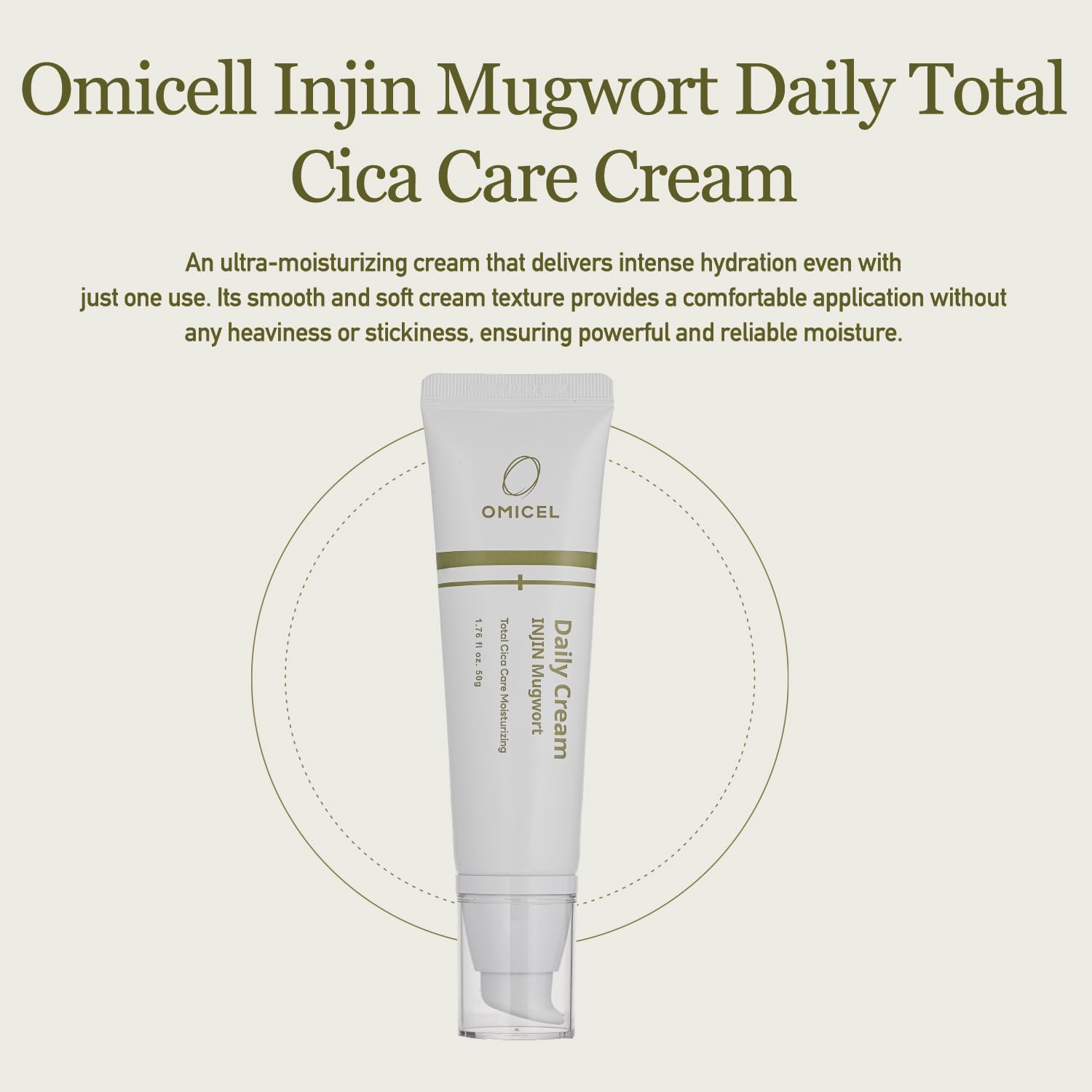 OMICEL INJIN Mugwort Daily Cream 50mL(1 Count) - Hydrating Korean Skincare Solution | Moisturizing Face & Body Cream with Candida Bombicola Ferment