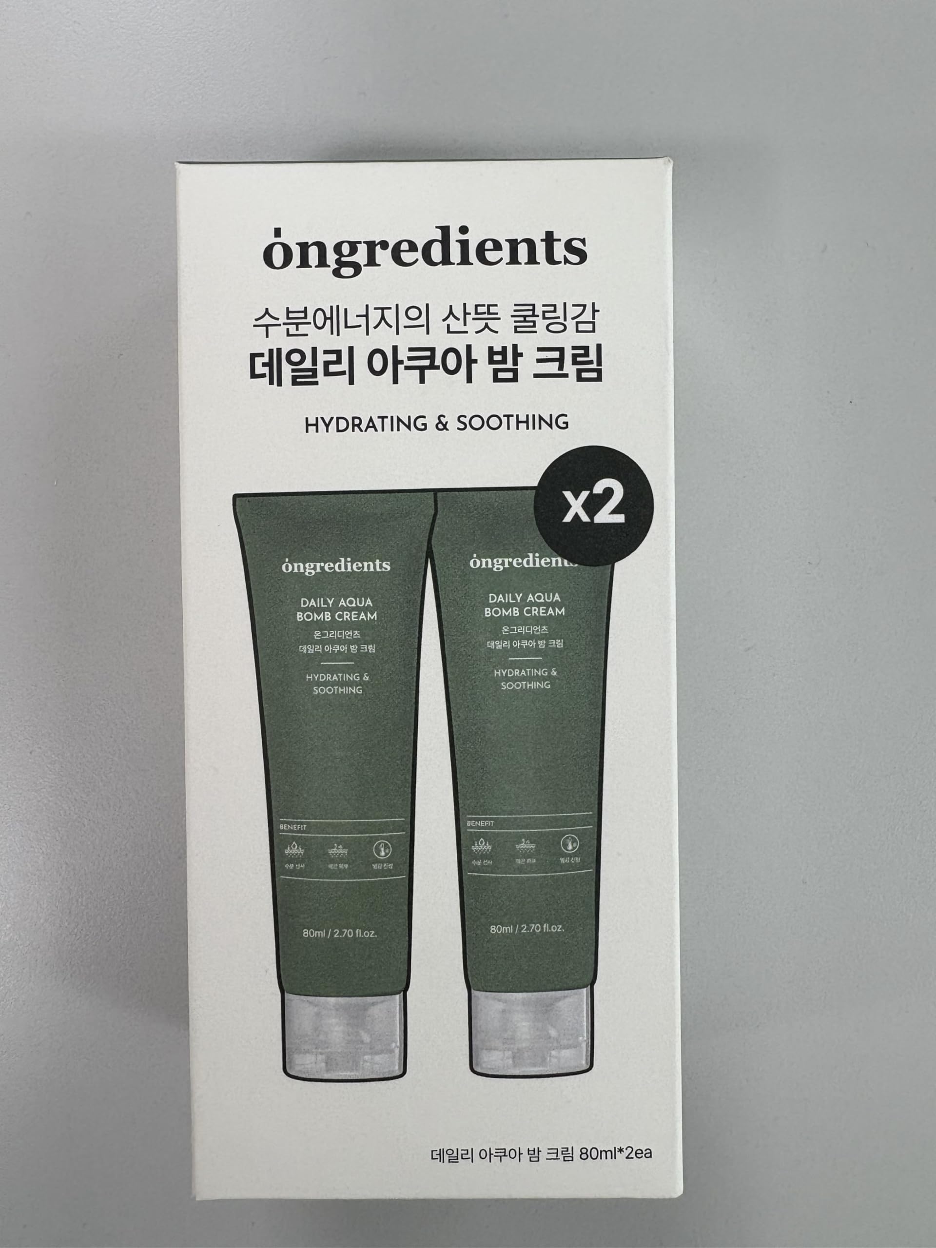 ONGREDIENTS Daily Aqua Bomb Cream | Niacinamide, Panthenol, Hyaluronic Acid, Peptide Complex, Green Tea, Advanced Hydrating Formula for Dry, Sensitive Skin | Vegan, Korean Skin Care 80ml / 2.70 fl Oz