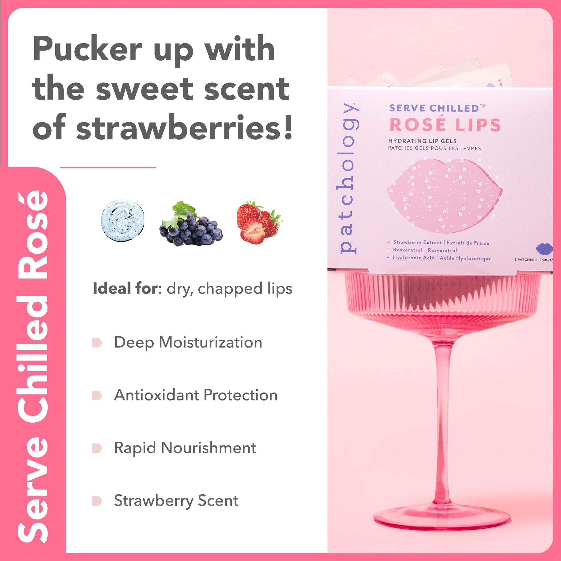 DEEP MOISTURE FOR YOUR LIPS: Patchology's Serve Chilled Rosé Gel Lip Mask, packed with Hyaluronic Acid and Resveratrol, delivers intense hydration to your lips, leaving them feeling smooth, plump, and nourished. It’s a must for dry, chapped lips that need a boost of moisture and softness.