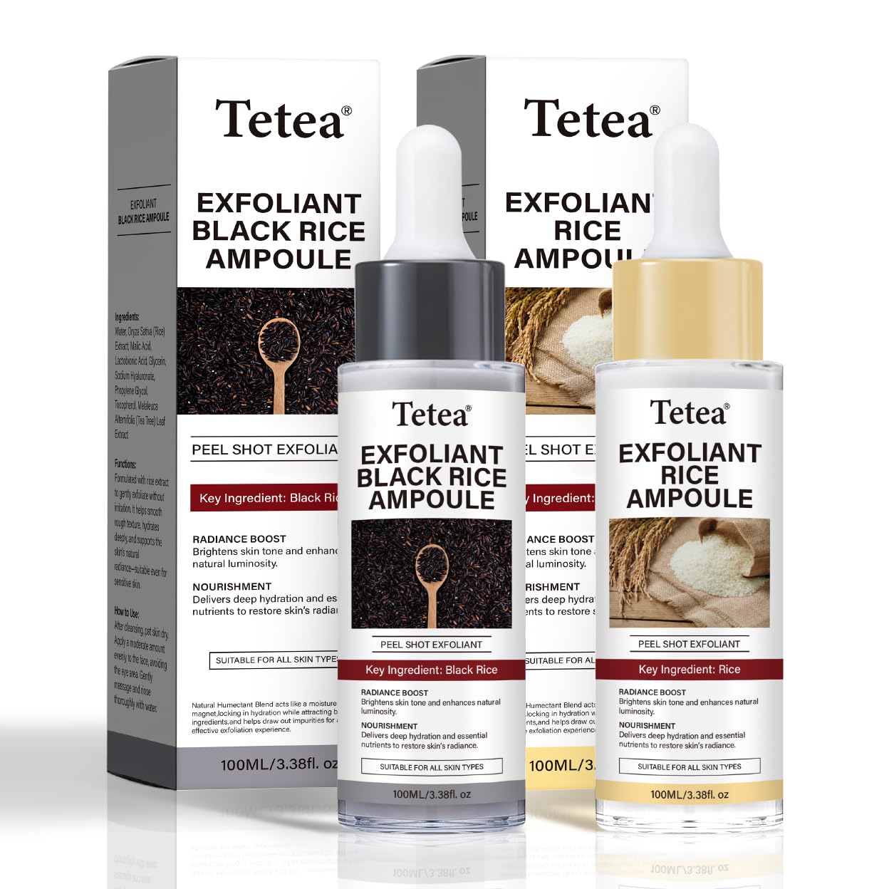 • Dual Rice Exfoliating Formula : Two complementary ampoules , white rice for radiance, black rice for pore care , designed to gently exfoliate dead skin cells and refine texture with consistent daily use.