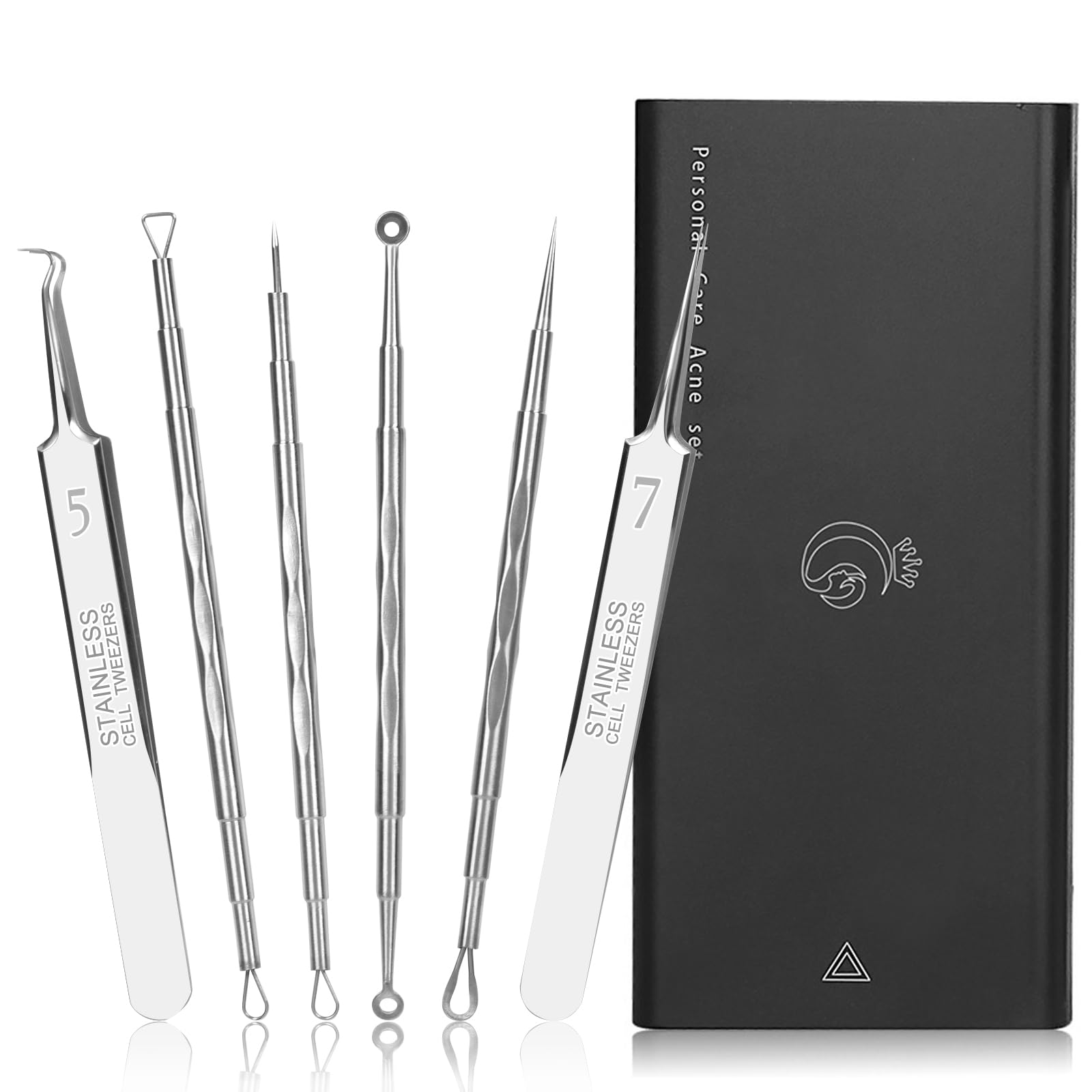 Details: This professional 6-piece blackhead removal set includes precision-crafted stainless steel tools designed for safe and effective blemish extraction. The kit features specialized implements including angled tweezers and various loop extractors to address different types of skin concerns. Each tool is made from high-quality stainless steel that's both durable and easy to clean. The set comes complete with a sleek storage case to keep your tools organized and protected. The ergonomic design of each tool provides excellent control and precision during use. Perfect for skincare enthusiasts who prefer to maintain their complexion at home, this set includes differently sized tools to tackle various types of blemishes. The compact case makes it convenient for travel while protecting the tools from damage. For best results, always clean and sterilize tools before and after each use.