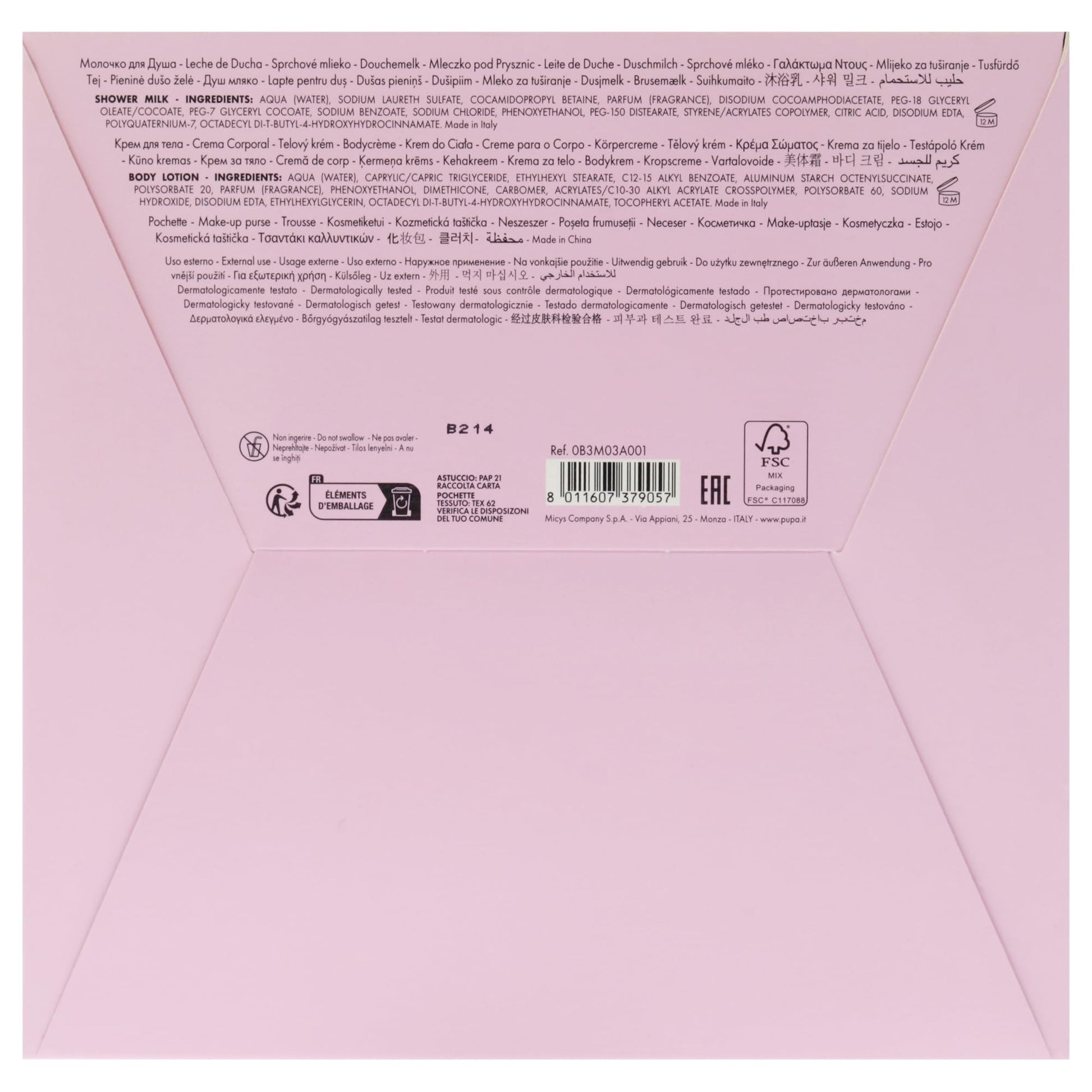 Details: Discover the delightful world of Pupa Milano Breakfast Lovers, where the enchantment of a morning ritual meets the luxury of skin care. This 3 Pc Gift Set is designed to elevate your daily beauty and personal care routine. Meticulously crafted to cleanse your skin, the gentle and hydrating embrace of the body wash leaves it soft, supple, and delicately scented. The body lotion offers a light and velvety fast-absorbing formula that leaves your skin silky and fresh. But the indulgence doesn't stop there – this set includes a practical and roomy purse made from technical fabric, ensuring your skincare products are organized and accessible. The lined interior and drawstring closure add a touch of sophistication to your on-the-go routine. Pupa Milano's commitment to conscious beauty is reflected in the formulation of the shower milk. It is free from animal derivatives, making it a cruelty-free choice for those who value clean skin care. Enjoy guilt-free indulgence knowing that each application not only enhances your skin but also contributes to a more compassionate and conscious beauty routine.