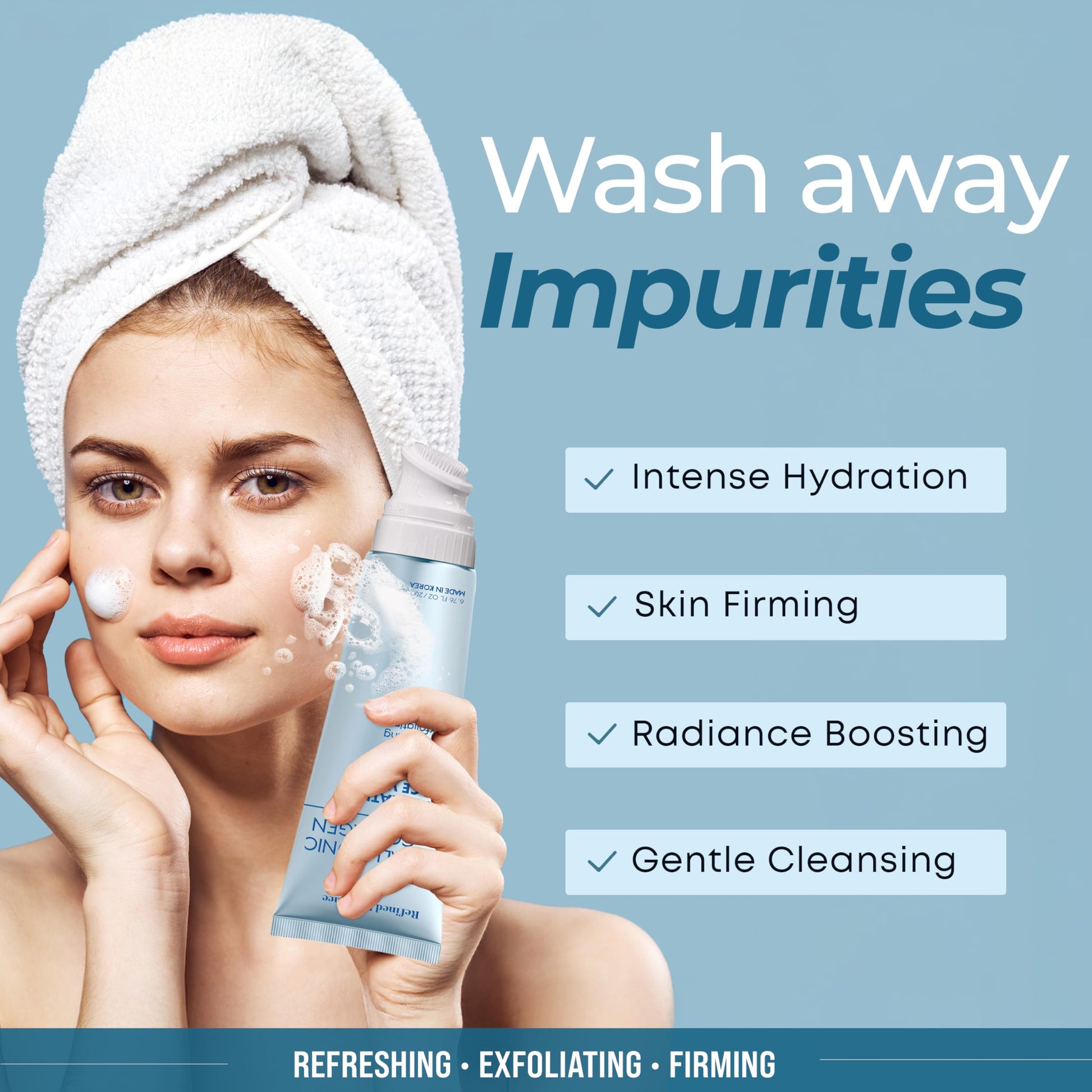 Details: The Refined Radiance Hyaluronic & Collagen Face Wash is specially formulated for individuals with dry, sensitive, or dull skin seeking a gentle yet effective daily cleanser. Infused with skin-loving Hyaluronic Acid and Vegan Collagen, this Korean beauty essential deeply hydrates, smooths, and firms the skin while cleansing away impurities and excess oil. Hyaluronic Acid delivers lasting moisture that plumps the skin and minimizes the appearance of fine lines, while Collagen works to reinforce the skin barrier, improve texture, and retain essential hydration. Complemented by Vegan Glycerin for added softness and skin barrier support, this face wash is a clean beauty solution made with 95% naturally derived ingredients. Its low-irritation formula is dermatologist-tested, cruelty-free, vegan, and free of parabens, sulfates, and phthalates—perfect for sensitive skin. Made in Korea, this cleanser blends innovative skincare science with trusted K-beauty heritage. Use daily—morning and night—by massaging a small amount onto damp skin, then rinsing thoroughly for a fresh, nourished complexion. Experience a radiant cleanse that doesn’t compromise comfort, supported by a satisfaction guarantee that puts your skin’s health first.