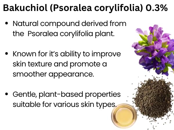 [Bakuchiol] Bakuchiol is a plant-based natural anti-aging ingredient that is as powerful as Retinol, yet gentler on skin. Derived from the seeds of the Babchi plant, it is known to have potential to fight the appearance of fine lines and wrinkles and signs of aging. Bakuchiol does not irritate skin, making it more suitable for use on sensitive skin. Bakuchiol is integrated into both morning and evening anti-age skincare routines, paired with hydrating or plumping ingredients such as Hyaluronic Acid.