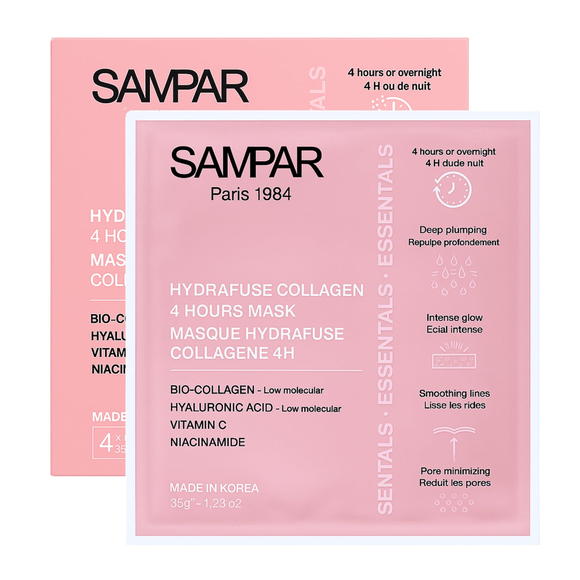 Sampar Hydrafuse Collagen 4 Hours or Overnight Mask – Korean Skincare for Radiant, Smooth Skin | Anti-Aging Face Mask with Ultra-Potent Collagen to Reduce Wrinkles, Tighten Pores & Boost Glow (4-Pack)