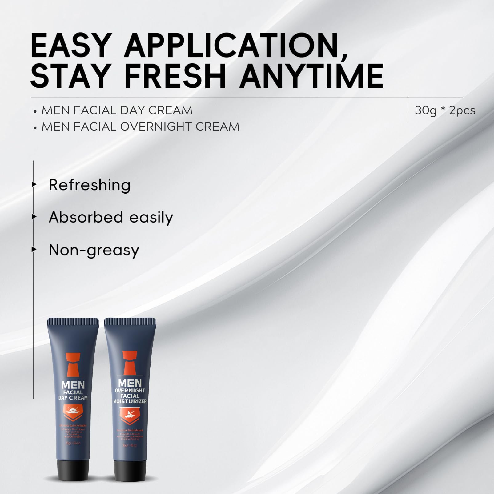 ❸ 【24-Hour Hydration: Day & Night Moisturizers】-- Experience all-day comfort with our non-sticky day cream that absorbs quickly, providing essential moisture without a greasy feel. The overnight moisturizer works while you sleep to deeply nourish and repair your skin. Together, they form a core part of this skin care for men set, ensuring your skin remains moist & supple