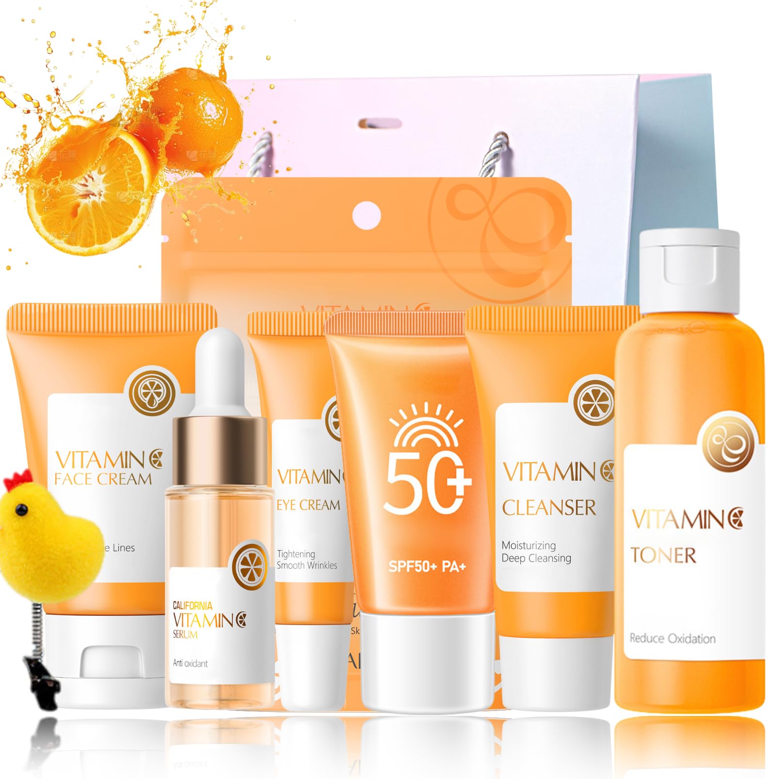 Skincare Set Vitamin C Girls Gifts - Skin Care Set Antioxidant - Hydrating Skin Care Kit for Women with Sunscreen,Toner,Serum,Eye Cream - Skin Care for Teens 10-12 (One Size, 8PCS Vitamin C Scent)