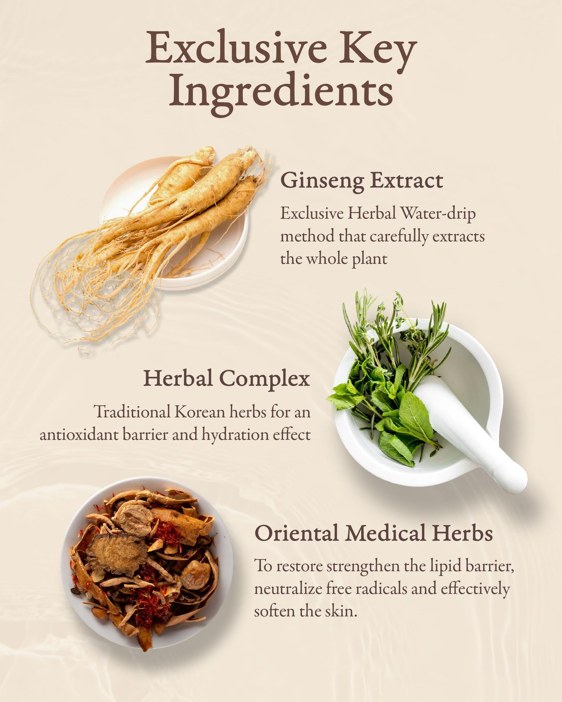 GINSENG INFUSION HERBAL CARE - Sooryehan’s exclusive herbal water-drip technology where the whole ginseng plant (roots, stems, leaves) undergoes a 100-hour long extraction process to ensure all actives are potent and retains its full potential.