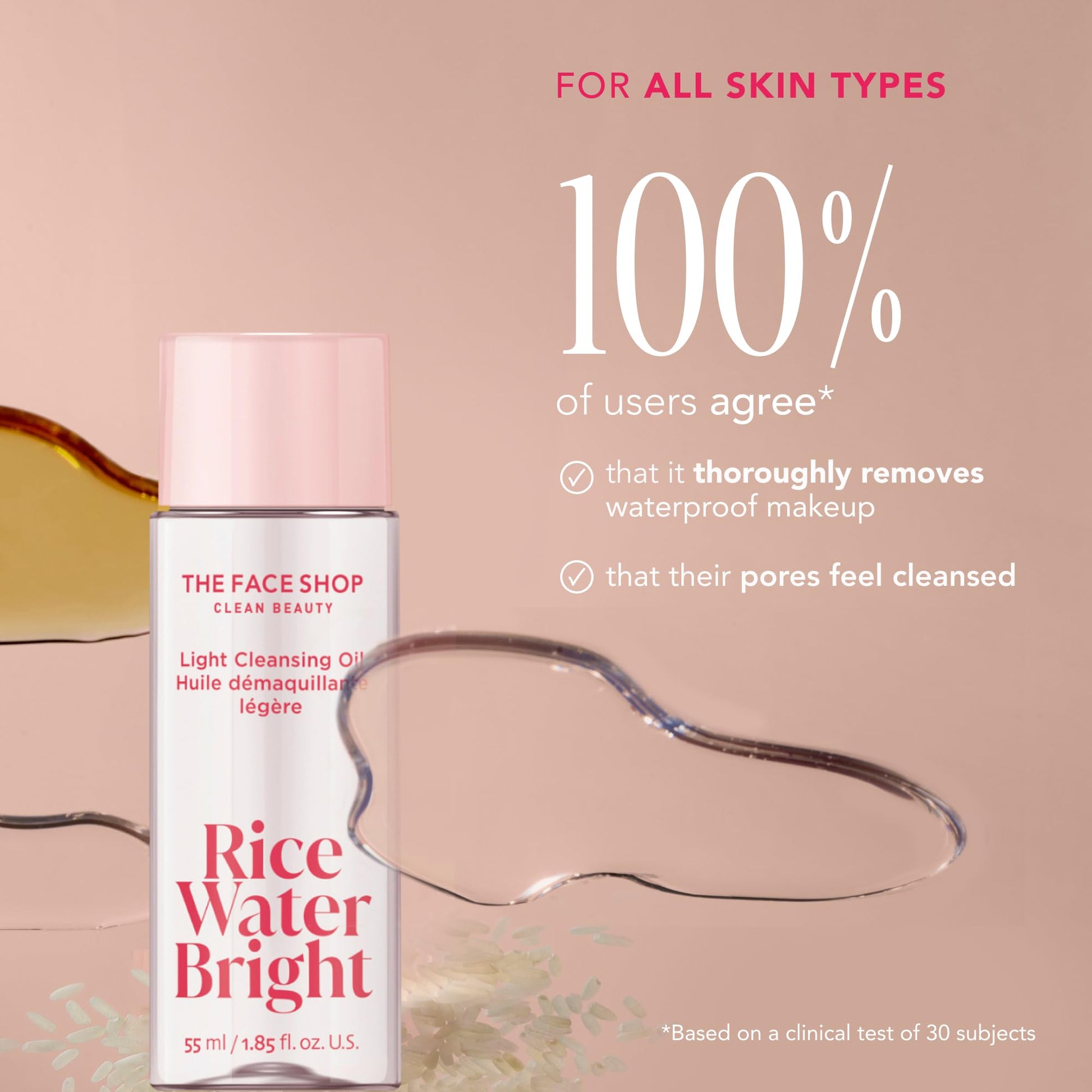 The Face Shop Rice Water Bright Vegan Double Cleanse Trial Set, Travel Size, Foaming Cleanser & Mini Cleansing Oil, Korean Skin Care, Gentle Face Cleanser & Pore Control, Moisturizing Makeup Remover