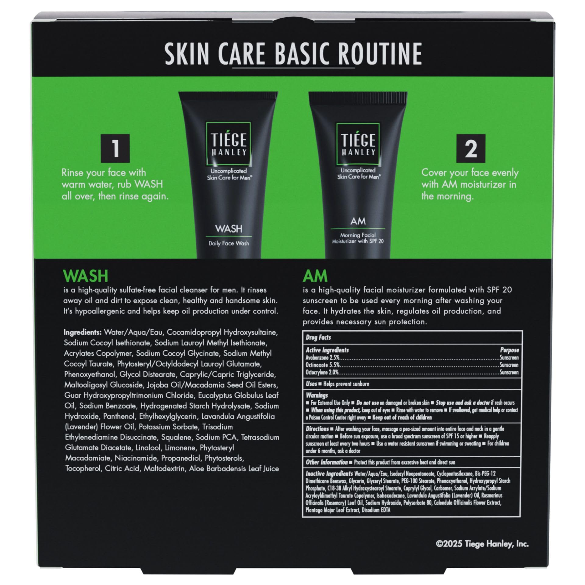 Enhance Your Handsome: Products in the Tiege Hanley Basic Routine for Men work together to smooth, hydrate, and protect your skin. Includes face wash (2.5oz) and AM facial moisturizer with SPF20 (0.75oz), and a simplified usage guide. This basic skin care set provides a 30-day supply that’s great as a starter pack for you or a gift for someone else.