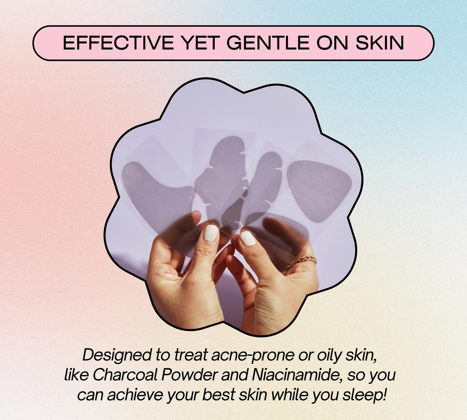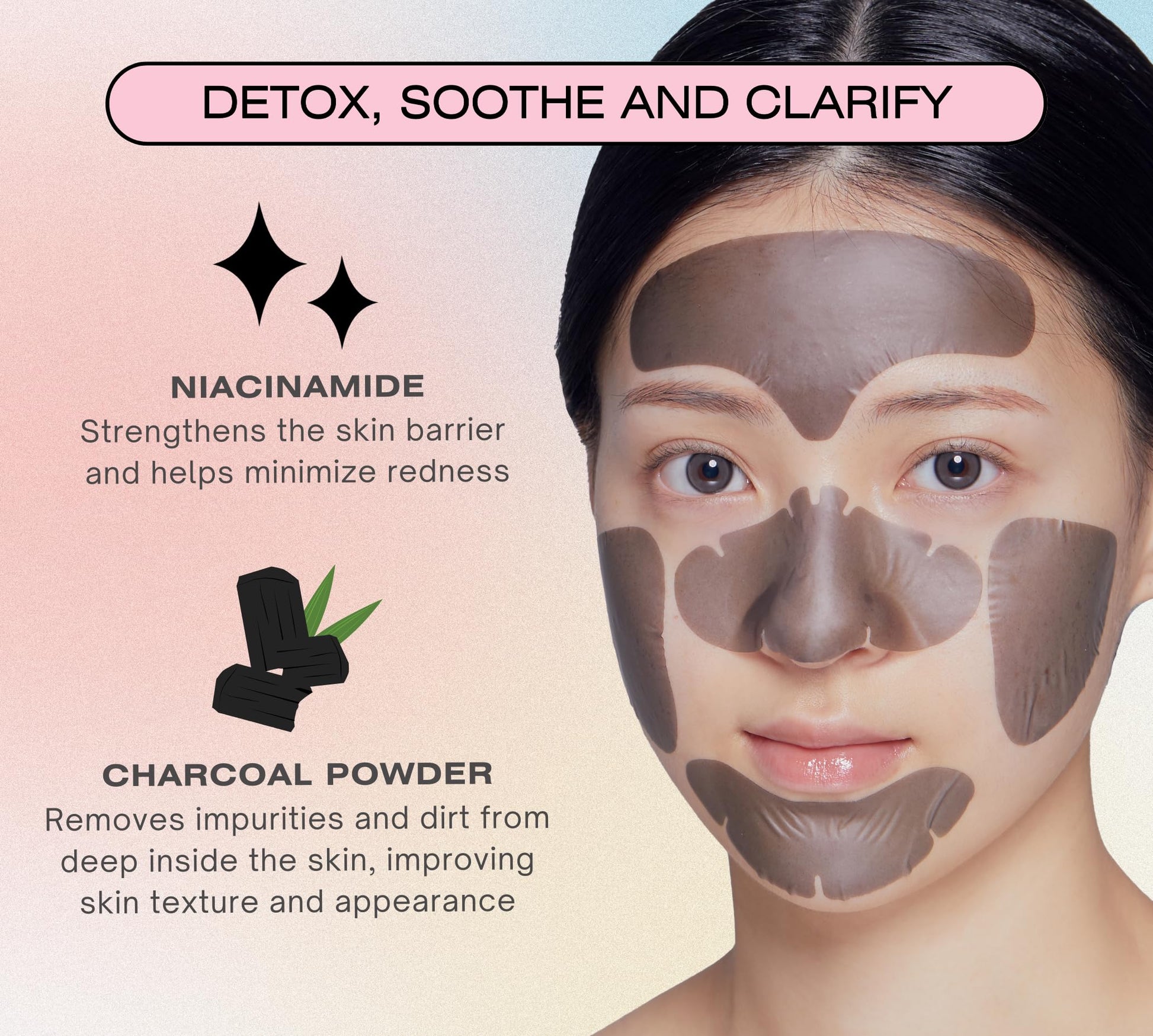 • 100% Hydrocolloid Patches inflused with skin soothing ingredients like Charcoal, Nicacinamide and Rice Extract