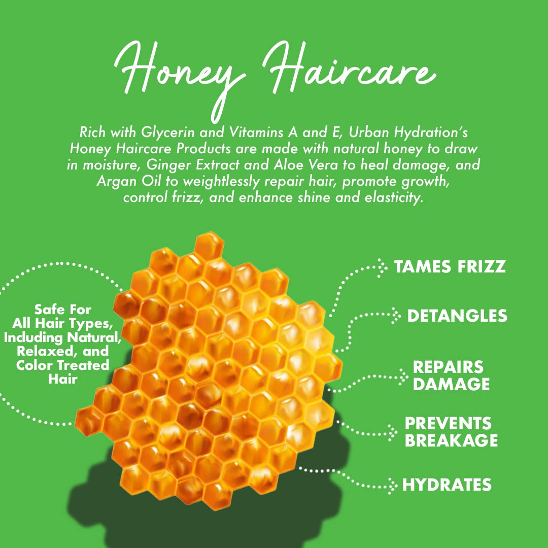 ABOUT THE PRODUCT: Urban Hydration Honey Health and Repair 6.8oz Set are all natural products safe for all hair types and natural, relaxed, and color treated hair. The shampoo intensely cleanses and revitalizes hair while strengthening, the conditioner and daily moisturizer help repair damage, prevent breakage and tame frizz, the detangler refreshes curls without harsh chemicals. Contains (1) 6.8 Ounce Shampoo (1) 6.8 Ounce Conditioner (1) 6.8 Ounce Daily Moisturizer and (1) 6.8 Ounce Detangler