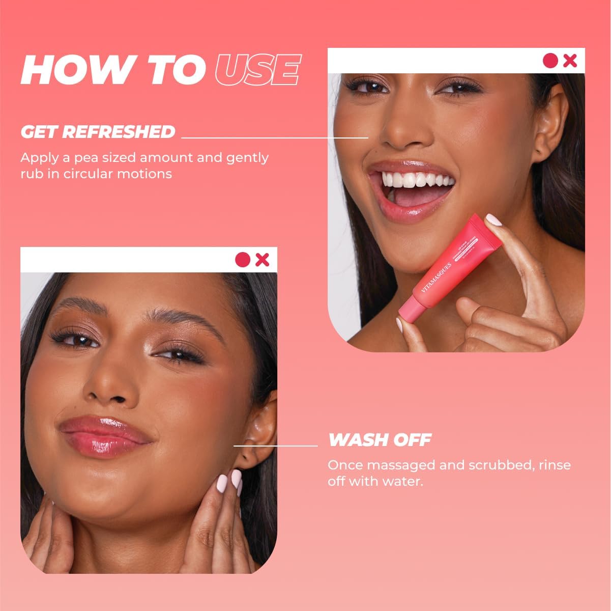 Enriched with Skin-Nourishing Ingredients: Packed with Vitamin E, Squalane, Watermelon, and Pomegranate extracts, Vitamasques vegan lip scrub works as a lip exfoliator scrub and moisturizer, helping restore dry, chapped lips to a smooth, healthy-looking state.