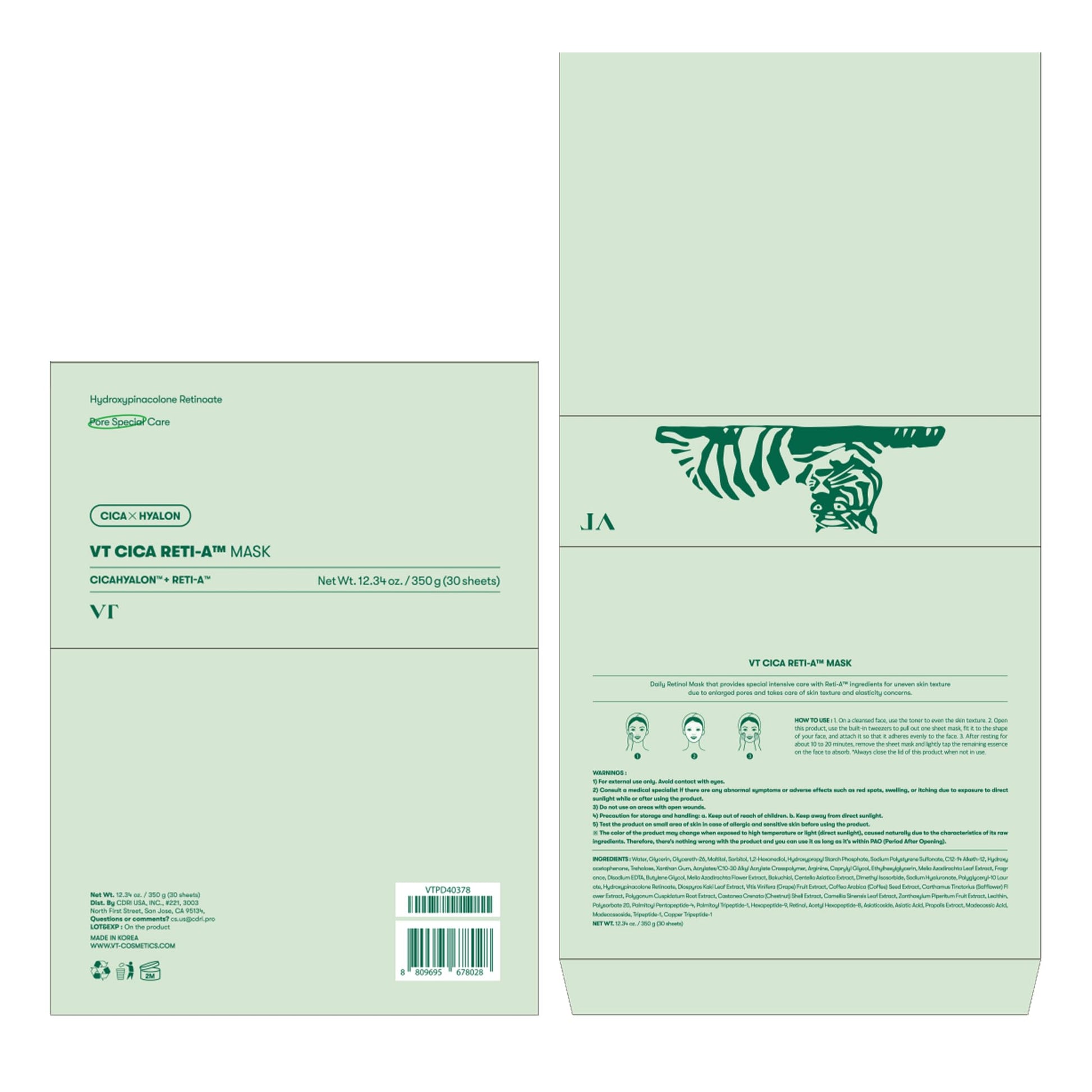 VT COSMETICS CICA Reti-A Daily Mask 30 Sheets, Retinol Complex for Pore Minimizing, Skin Softening & Hydrating Facial Mask, Ideal for Retinol Beginners, Korean Face Mask